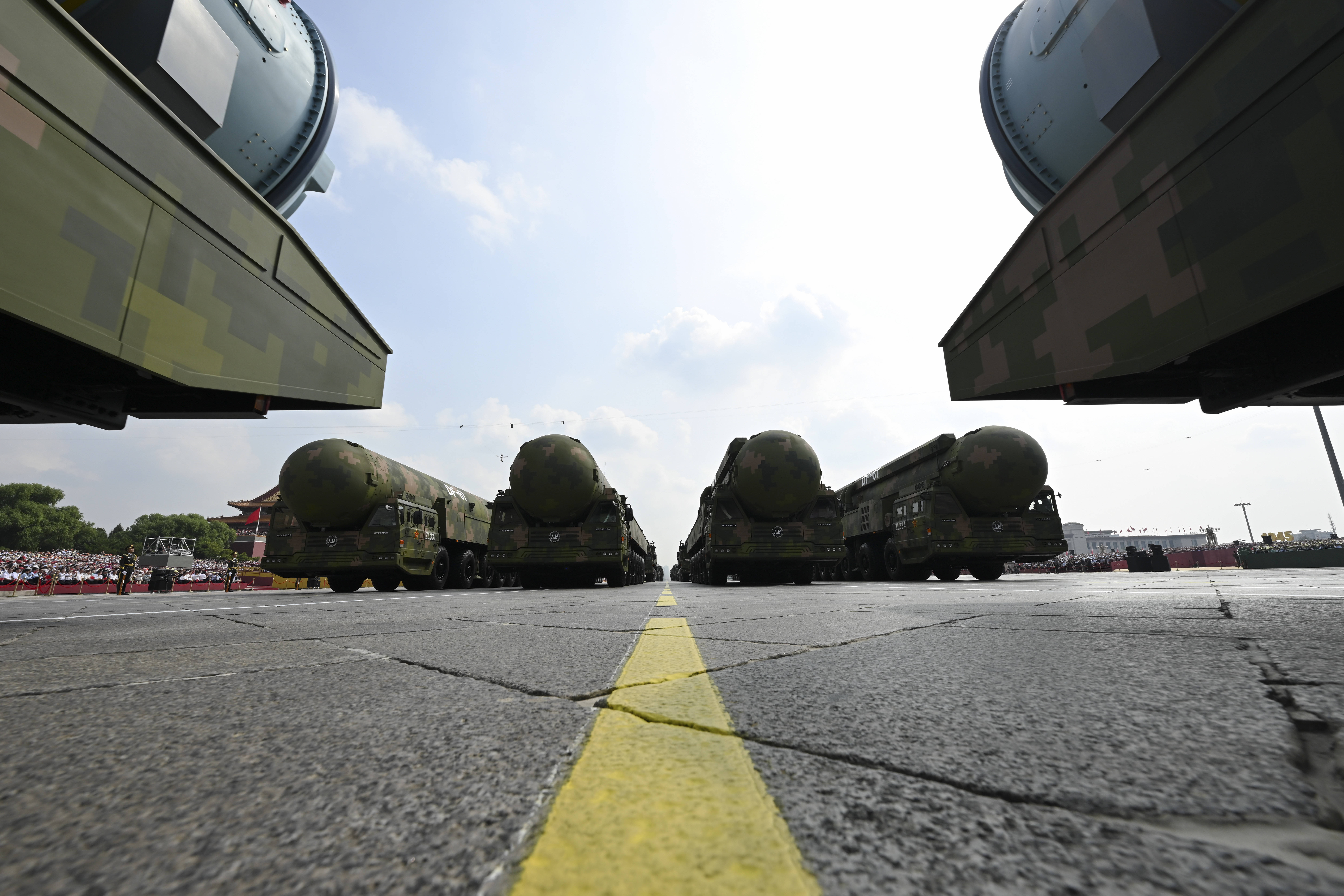 9月3日,纪念中国人民抗日战争暨世界反法西斯战争胜利80周年大会在北京隆重举行。这是核导弹第一方队接受检阅。新华社记者 肖艺九 摄