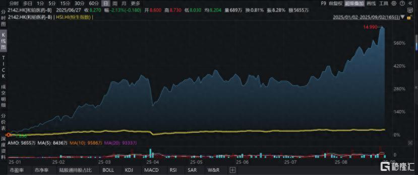 政策大力扶持、License-out(对外授权)交易频频落地……多重利好叠加之下,创新药成为资本市场上最炙手可热的板块之一。其中,和铂医药-B(2142.HK)表现尤为抢眼——凭借全球稀缺的抗体技术平台和接连落地的跨国合作,其股价年内涨幅高达691.94%(截至9月2日收盘),强势跻身港股创新药板块涨幅前四。