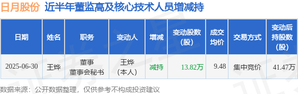 日月股份近半年内的董监高及核心技术人员增减持详情如下: