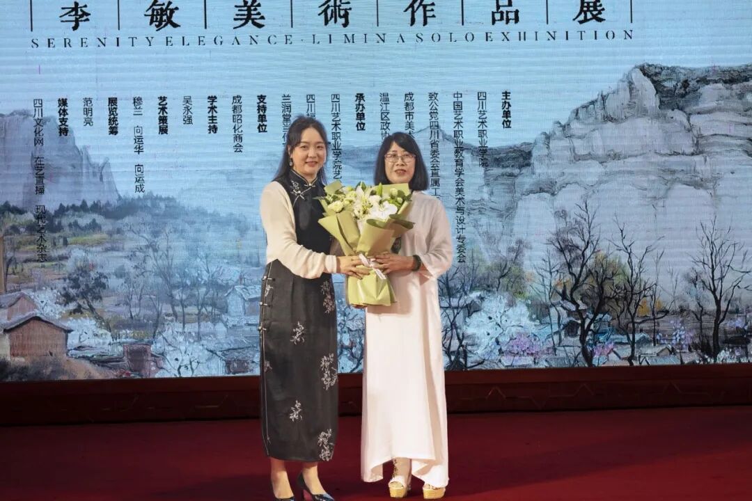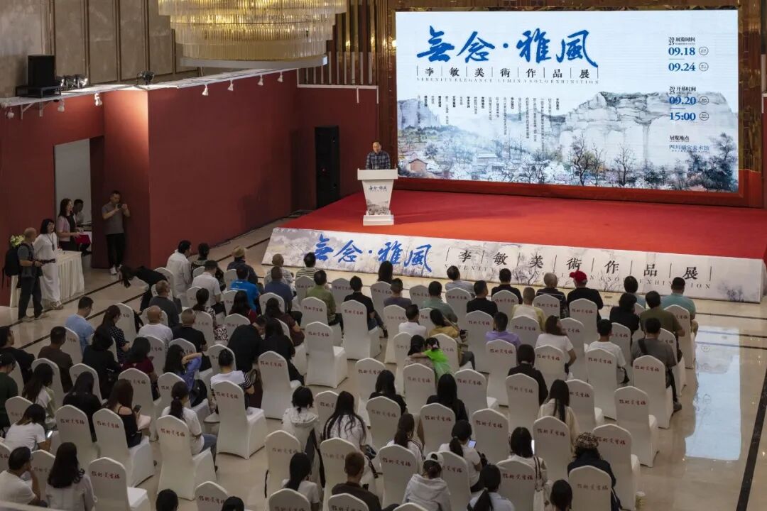 此外,本次展览还得到了学术与专业层面的强力支撑:四川大学教授、博士生导师、著名艺术评论家吴永强担任学术主持,为展览提供深度理论解读;中国语文报刊协会演讲与口才分会副会长、四川省音乐家协会副主席、兰润堂当代艺术馆馆长、成都画廊协会副会长穆兰担任策展人及艺术总监,以专业视角打造高品质展览呈现;向运华、向运成负责展务执行,保障展览细节尽善尽美。全川各地的艺术家、企业家代表及四川艺术职业学院师生代表也纷纷到场,共同为李敏老师的艺术成果喝彩。