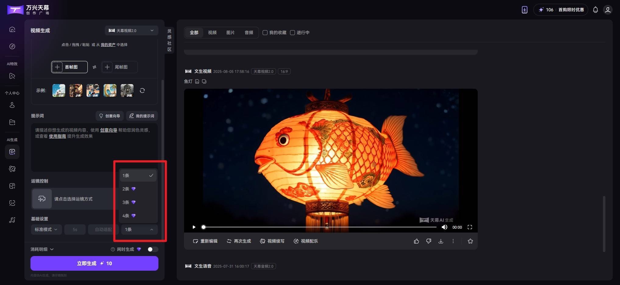 近日,AIGC软件A股上市公司万兴科技旗下AIGC视频创作平台万兴天幕创作广场及万兴天幕AI App持续迭代,同步重磅推出“批量生成”功能,为专业创作者带来全新生产力工具。该功能支持用户在图生视频、文生视频及视频续写模式下,一次性最多生成4条不同创意的视频内容,可为用户提供更多创意内容选择,并极大缩短以往AI视频逐个生成所需的等待时间,实现创作效率翻倍增长,尤其适用于短视频创作、电商营销和内容运营等需要创意效果高效测试与视频快速量产的场景。